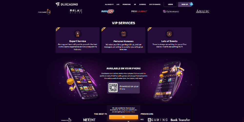 Dux Casino wird von N1 Interactive Ltd. betrieben, das über eine MGA-Lizenz verfügt. Trotz Bedenken hinsichtlich der Geschäftsbedingungen versichert der Text, dass das Spielen im Casino als sicher gilt. Das Design wird als konventionell beschrieben, mit häufig verwendeten Tabs oben auf der Homepage, die kürzlich eingeführte Spiele präsentieren. Die mit iOS und Android kompatible mobile Plattform zeichnet sich durch eine reibungslose Leistung auch ohne dedizierte App aus. Spieler können direkt über ihren Webbrowser auf Mobilgeräten auf die Spiele zugreifen und diese spielen.