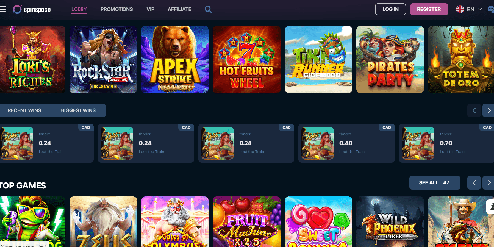 SpinSpace Casino verfügt über eine Spielbibliothek mit über dreitausend Titeln, darunter Spielautomaten, Sofortspiele, Tischspiele und Live-Casino-Lobbys. Der Aktionsbereich bietet verlockende Angebote, die erhebliche Gewinne versprechen. Das Casino bedient unterschiedliche Vorlieben mit Hunderten von Spielautomaten, schnellen Spielen wie Aviator und Plinko XY sowie einer Reihe von Live- und virtuellen Tischspielen wie Blackjack, Roulette, Poker, Baccarat und mehr. Für die meisten Spiele sind Demoversionen verfügbar, damit Spieler sie kostenlos ausprobieren können, bevor sie sich für den Einsatz von echtem Geld entscheiden.