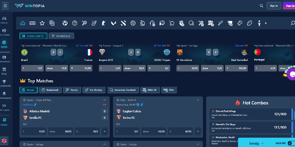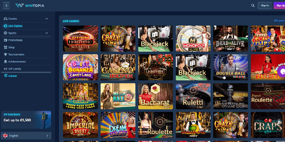Das von Altacore NV betriebene Wintopia Casino verfügt über ein vielfältiges Portfolio von über fünftausend Spielen von bekannten Entwicklern wie Pragmatic Play, Evolution, Red Tiger und Quickspin. Die Spielauswahl umfasst verschiedene Kategorien wie Spielautomaten, Live- und virtuelle Tischspiele, Poker, Blackjack und ein umfangreiches Sportwettenangebot mit Quoten für mehr als 20 verschiedene Sportarten.