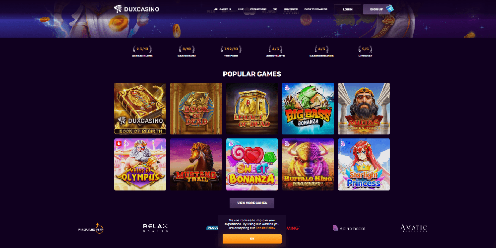 Dux Casino wird von N1 Interactive Ltd. betrieben, das über eine MGA-Lizenz verfügt. Trotz Bedenken hinsichtlich der Geschäftsbedingungen versichert der Text, dass das Spielen im Casino als sicher gilt. Das Design wird als konventionell beschrieben, mit häufig verwendeten Tabs oben auf der Homepage, die kürzlich eingeführte Spiele präsentieren. Die mit iOS und Android kompatible mobile Plattform zeichnet sich durch eine reibungslose Leistung auch ohne dedizierte App aus. Spieler können direkt über ihren Webbrowser auf Mobilgeräten auf die Spiele zugreifen und diese spielen.