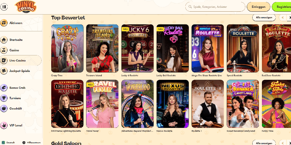 Wir können Ihnen nicht sagen, wie viele Spiele angeboten werden, aber wir können garantieren, dass es Hunderte, wenn nicht Tausende sein werden. Es wurde berichtet, dass Vinyl Casino Spiele sowohl von großen als auch von kleinen Unternehmen anbietet, was die verfügbare Auswahl erheblich erweitert. Darüber hinaus sollten sowohl neue als auch alte Favoriten im Casino verfügbar sein. Es sei gesagt, dass Vinyl Casino ein Erlebnis ohne Monotonie garantiert.