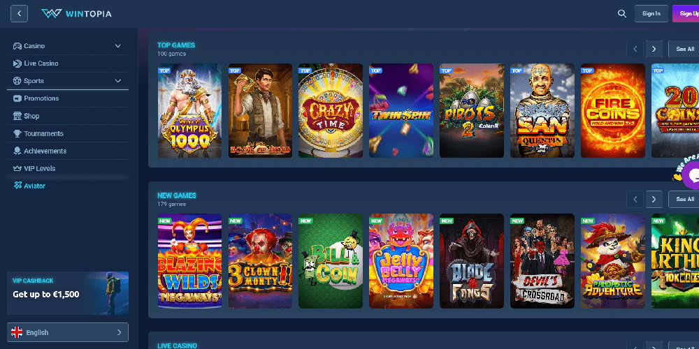 Im vielfältigen Portfolio von Wintopia findet garantiert jeder Spieler etwas Unterhaltsames. Neue Veröffentlichungen wie Nile Fortune, Pirots 2, Road Kill, Animafia, Timber Stacks und unzählige mehr gehören zu den Tausenden verfügbaren Slot-Titeln.