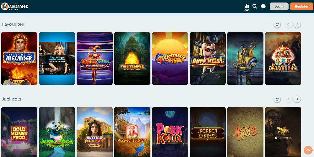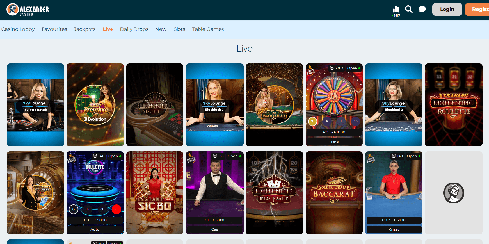 Vaikka Alexander Casinolla voi olla rajoitetumpi valikoima yli 400 peliä, se asettaa laadun etusijalle määrän. Alusta palvelee kolikkopelien harrastajia ja tarjoaa erilaisia kolikkopelejä, mukaan lukien klassiset, video- ja jättipottipelit. Lisäksi pelaajat voivat nauttia pöytäpeleistä, live-jakajapeleistä ja epätavallisista pelivaihtoehdoista, kuten bingosta, kenosta ja videopokerista.