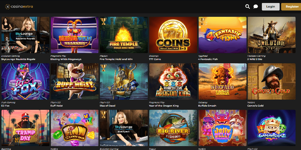 Casino Extra erottuu monipuolisesta ja laajasta valikoimastaan jännittäviä aktiviteetteja, mukaan lukien laaja valikoima peliautomaatteja ja live-jakajapelejä. Kasino tekee yhteistyötä huippuohjelmistokehittäjien, kuten Net Entertainmentin, Microgamingin, Betsoft Gamingin, Evolution Gamingin ja Play N GO:n kanssa, varmistaen rikkaan ja monipuolisen pelikokemuksen kaikille pelaajille.