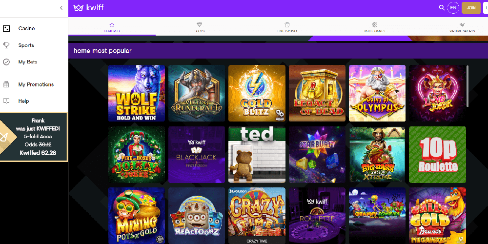 Kwiff Casino offers a vast library of games, including live dealer games and a variety of sports fixtures for betting. The diverse slot selection, including titles like Sugar Rush and Reactoonz, caters to both beginners and experienced players.