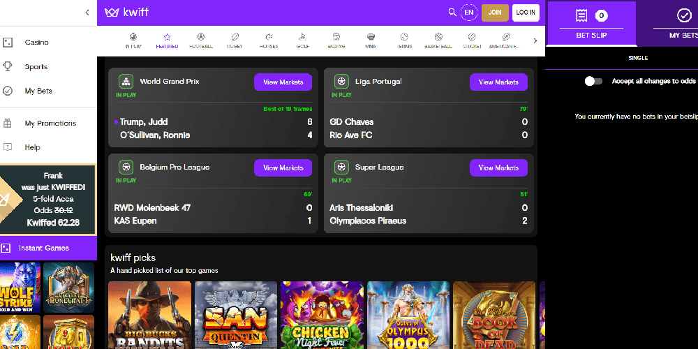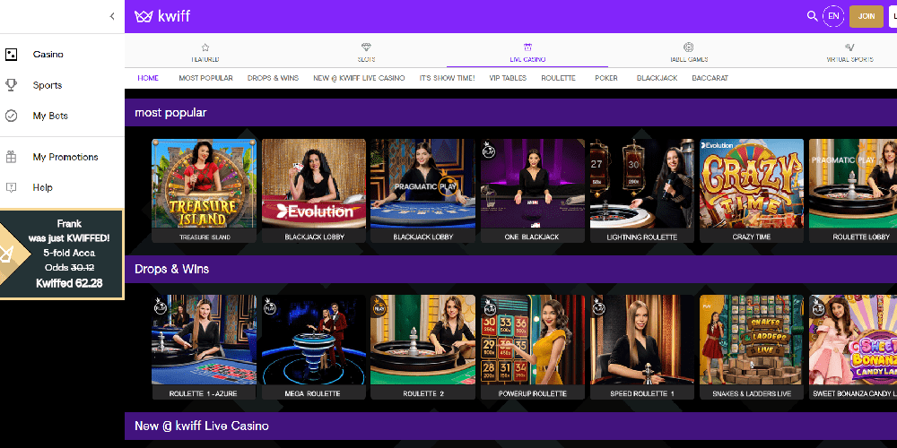 It only makes sense to play games that are almost identical to those found at brick-and-mortar casinos if you are going to spend a significant amount of time or money playing online. Live dealer games have grown in popularity because to their realistic simulations, and Kwiff Casino offers a large selection of these games. Also, there are a tonne of different sports fixtures to wager on at Kwiff Casino because sports are their main focus.